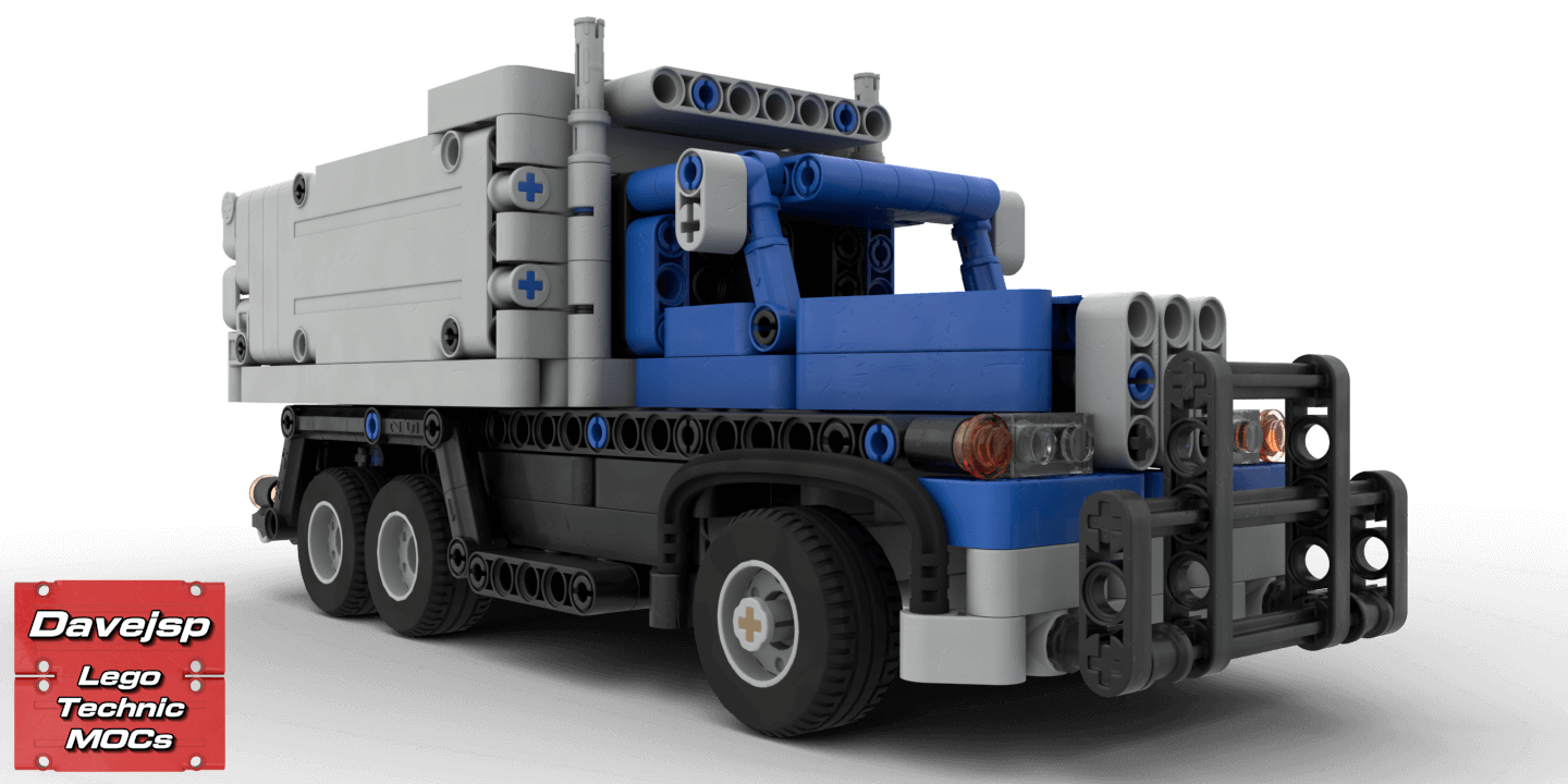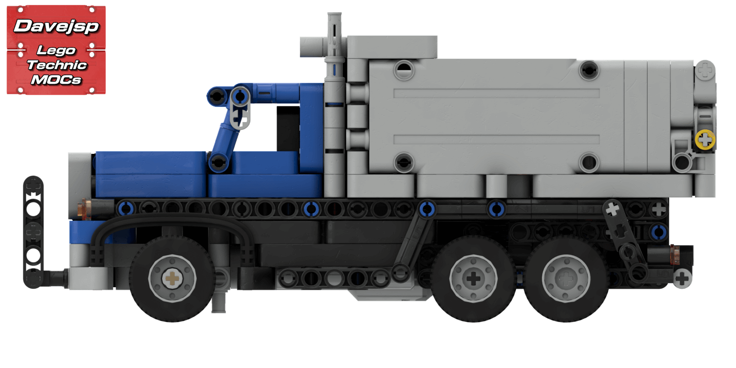 This is a very small-scale LEGO® Technic dump truck MOC, measuring just 27 cm long, 10 cm wide, and 16 studs high, quite compact for a truck. Despite its size, it has reasonable ground clearance and is fully remote-controlled: a PF servo motor handles steering, while a PF L-motor powers two of the four rear wheels. The default gear ratio is 1.667:1, giving the truck moderate speed but substantial torque, which can be adjusted if desired.The dump bed can be manually lifted using a side crank that operates a small linear actuator, simulating a hydraulic lift piston. The tailgate is secured with an axle that acts as a hook, it must be removed for the tailgate to open as the bed is lifted. The battery pack and IR receiver are housed inside the dump bed, with wires cleverly hidden in the chassis, and the building instructions explain how to conceal them. The battery pack can be turned on or off via a side button on the dump bed.This build uses mostly Technic pieces, with only a few system elements.A compact, functional, and educational MOC, perfect for RC enthusiasts and small-scale Technic builders. Enjoy building!