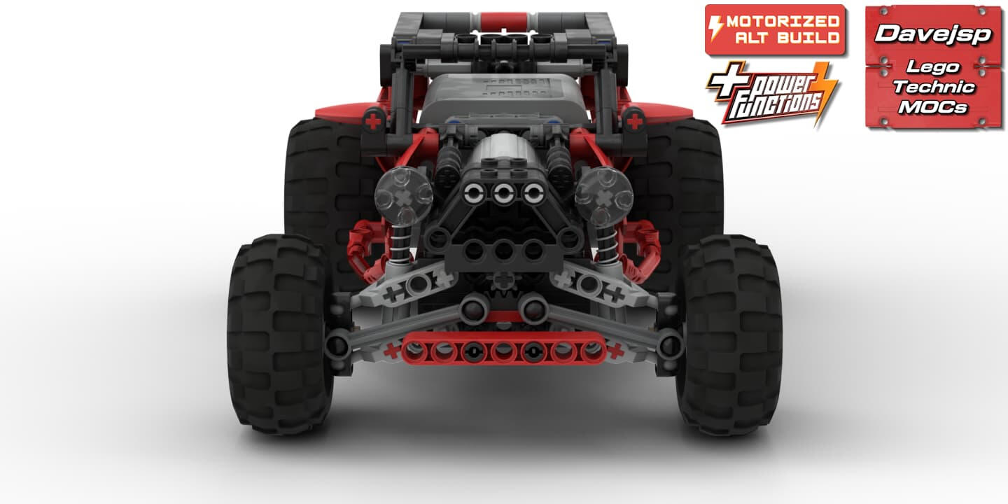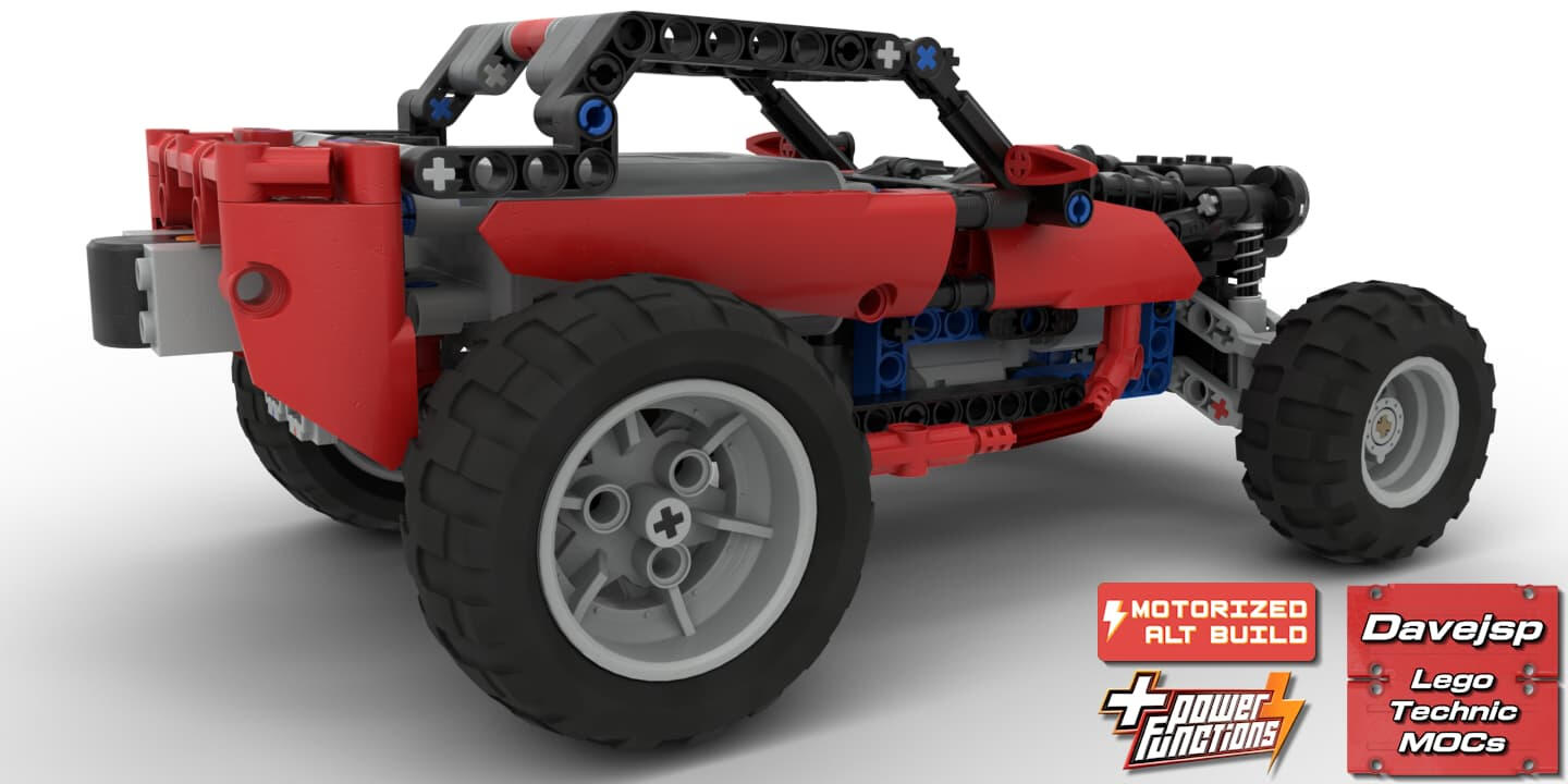 This MOC is a motorized alternative model for the 2010 LEGO® Technic Buggy (set 8048). It is built exclusively using the parts from the original set, with the addition of a few Power Functions components, making it easy to recreate for anyone who owns the Buggy.The model features remote-controlled rear-wheel drive through a solid axle with a 1:1 gear ratio, powered by a single PF L-motor, along with remote-controlled front-wheel steering driven by a PF servo motor. The front axle uses independent double-wishbone suspension, providing smooth and realistic handling.Thanks to its lightweight design, the buggy feels responsive and fun to drive. The power button is easy to access, and the batteries can be swapped quickly, making it practical for extended play sessions.A simple yet effective RC upgrade that brings new life to set 8048.