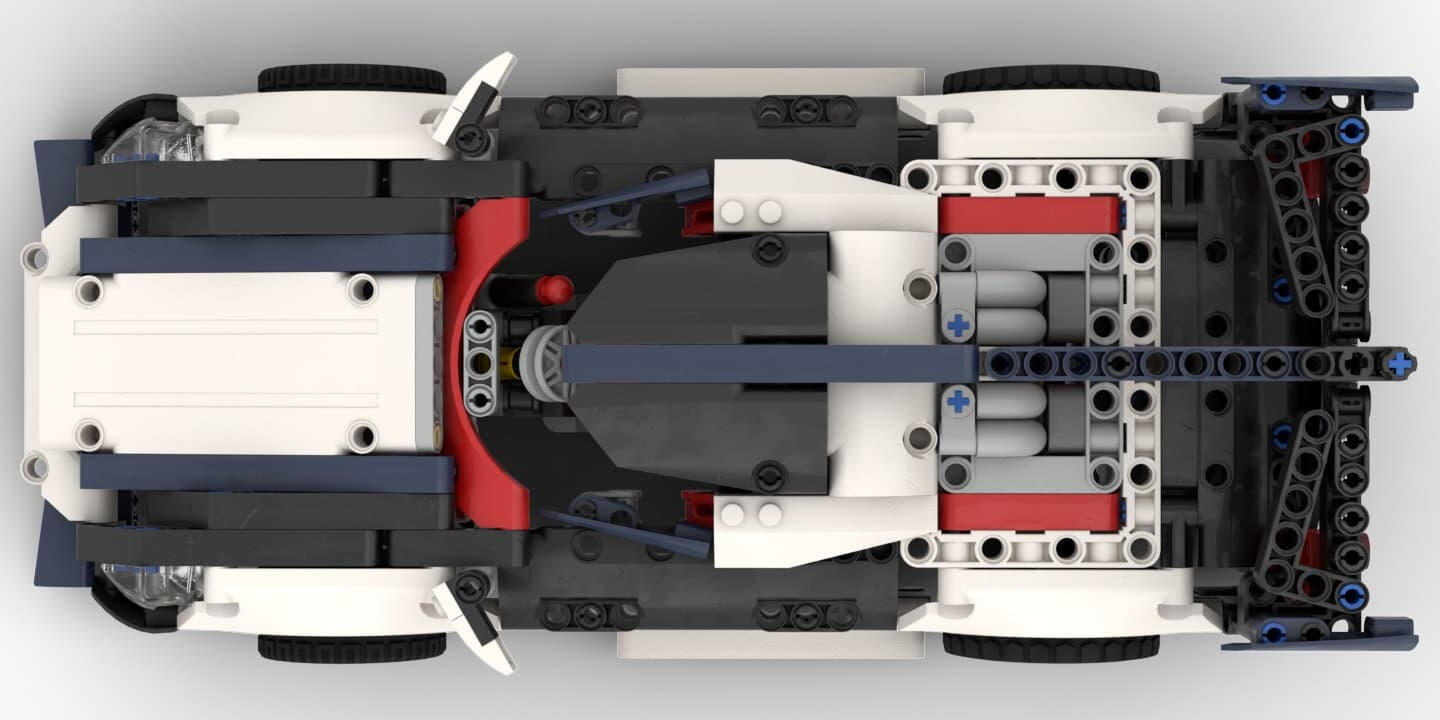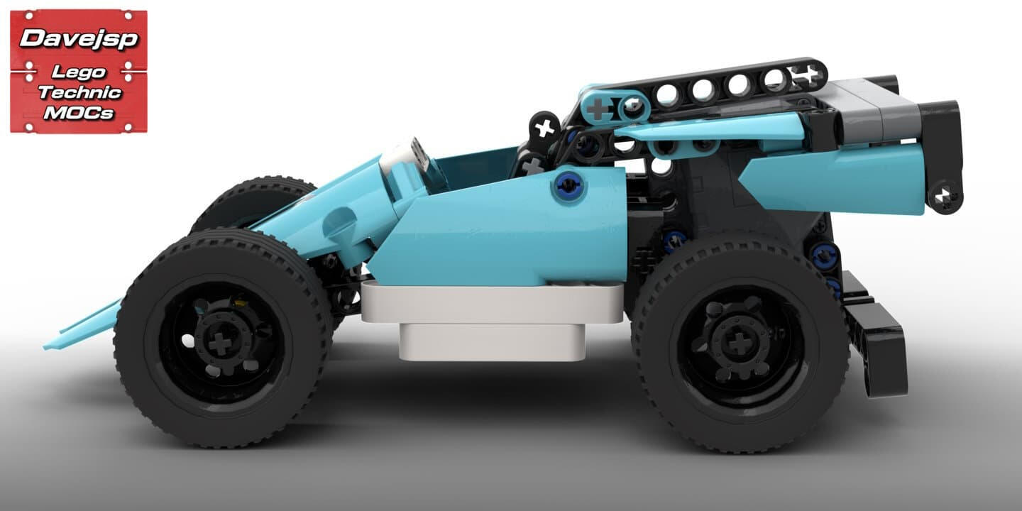 This compact, small-scale LEGO® Technic racer is built on top of my budget Power Functions RC chassis (see its page for details).Because it uses the same platform, it inherits all core functions: rear-wheel drive through a differential and precise front-wheel steering powered by a servo.The default gear ratio is 1.4:1, but the drivetrain can be easily adjusted to other ratios with only minor tweaks to the chassis, making it a flexible base for tuning speed and performance.